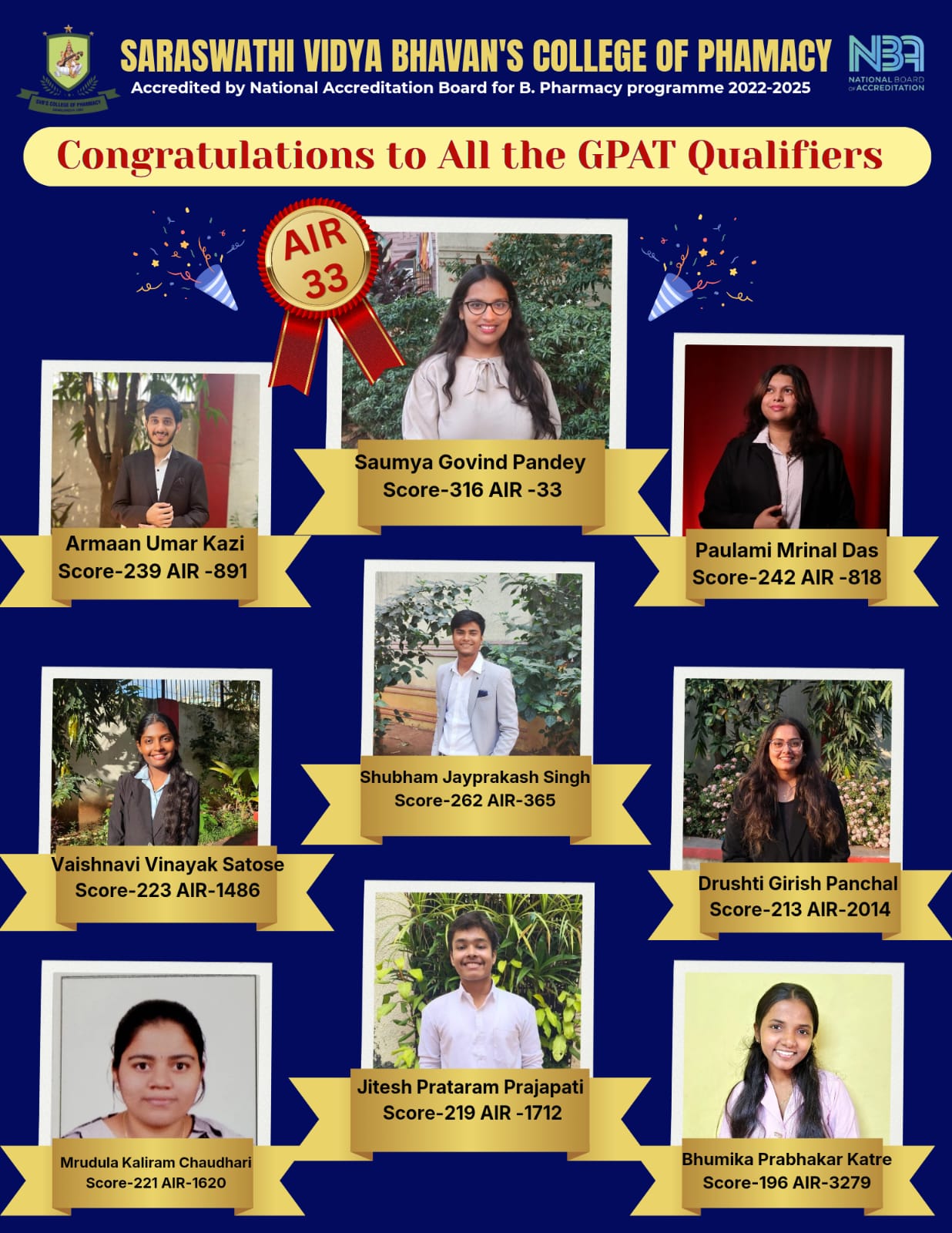 - To impart knowledge , develop skills and core competency in subject of pharmaceutical sciences in order to develop a career through higher studies, employment and entrepreneurship